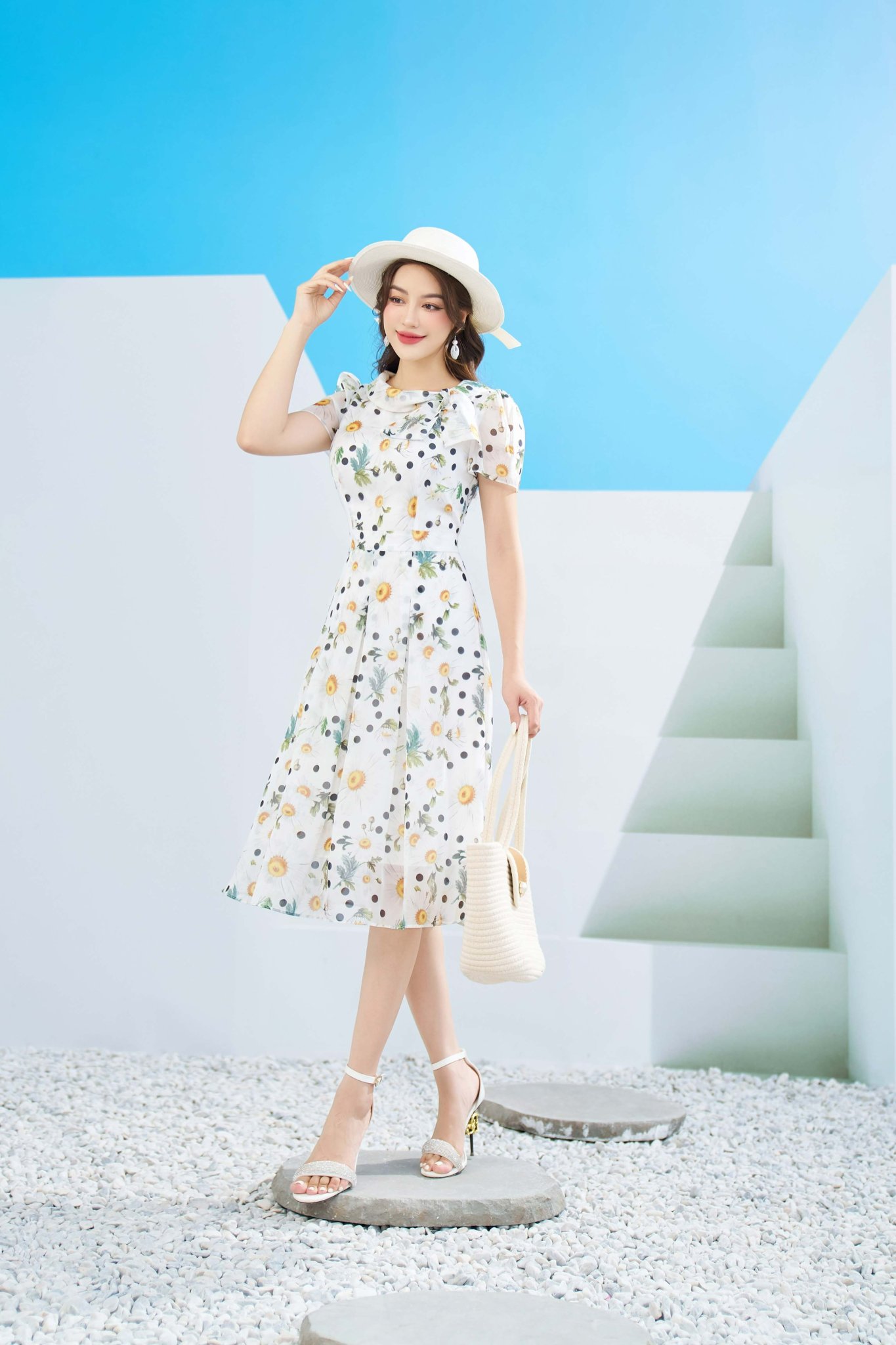Nàng tỏa sáng giữa đám đông với chiếc váy xòe màu pastel, tạo nên vẻ đẹp tự tin và phóng khoáng. Màu sắc nhẹ nhàng và tinh tế của váy xòe pastel mang đến một ánh sáng mơ màng và tạo điểm nhấn ngọt ngào.