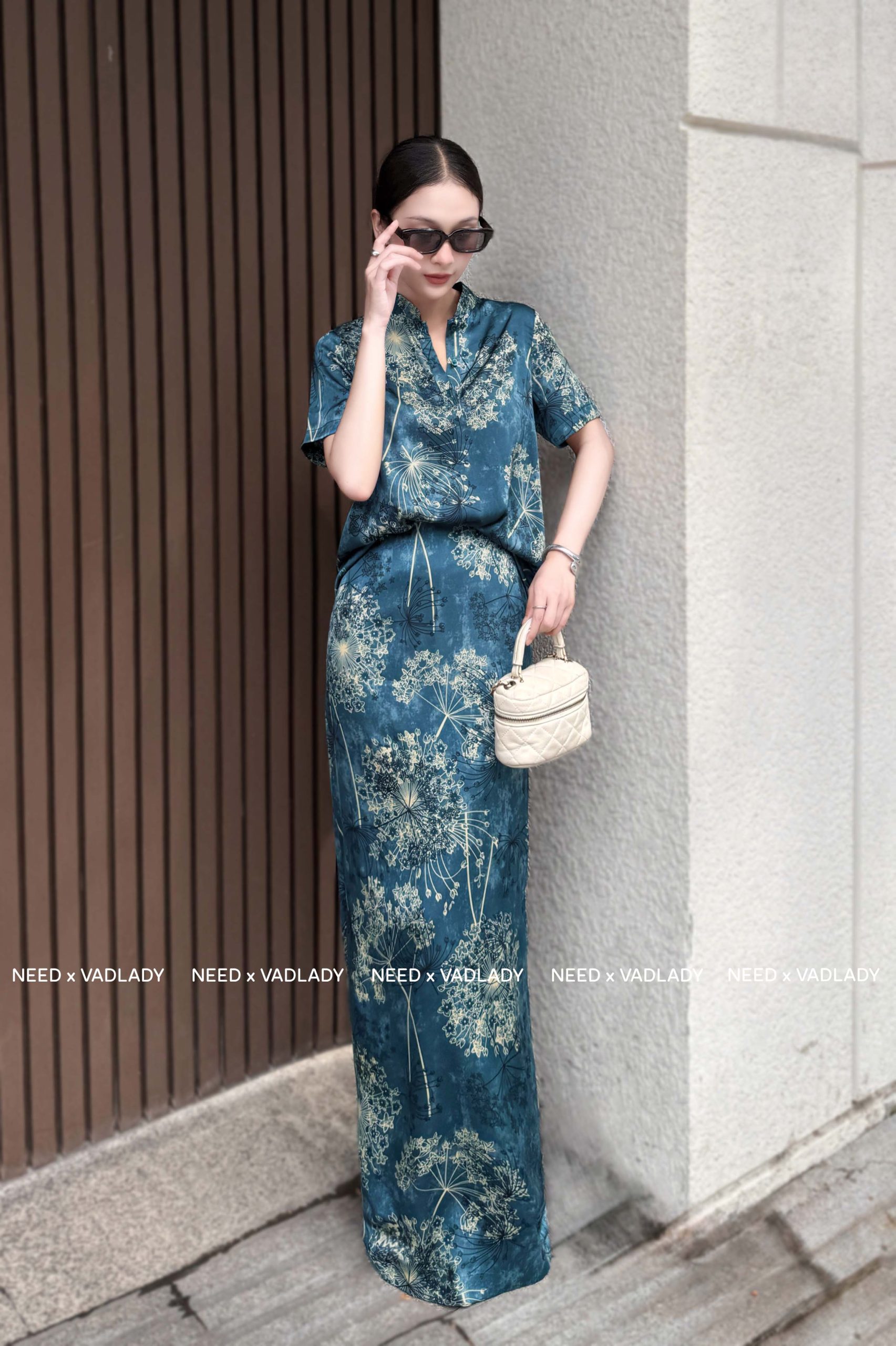 Đầm Lụa Dáng Dài Xanh Họa Tiết Hoa Thanh Lịch – VADLADY